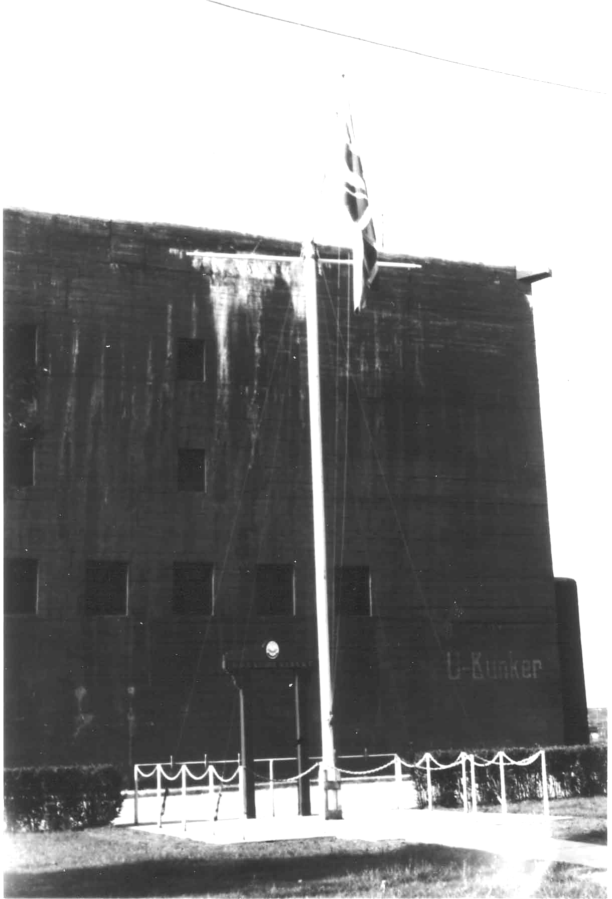 | Bunker and flagpole with Union Jack raised after handover Ceremony (Note the HMS Royal Rupert sign still in position behind the flagpole) |